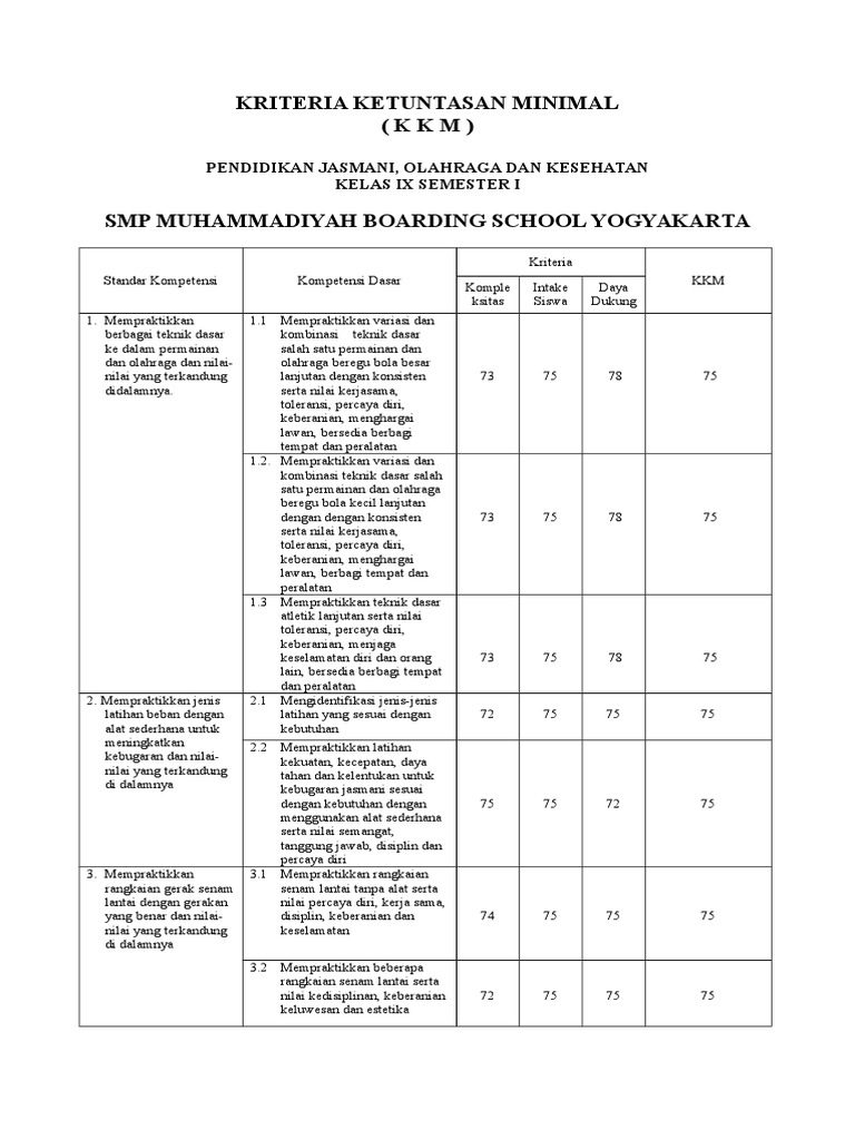 Demikian kkm/ kbm pjok kelas 9/ ix jenjang smp/mts kurikulum 2013 revisi 2018 yang sanggup aku bagikan, agar bermanfaat.
