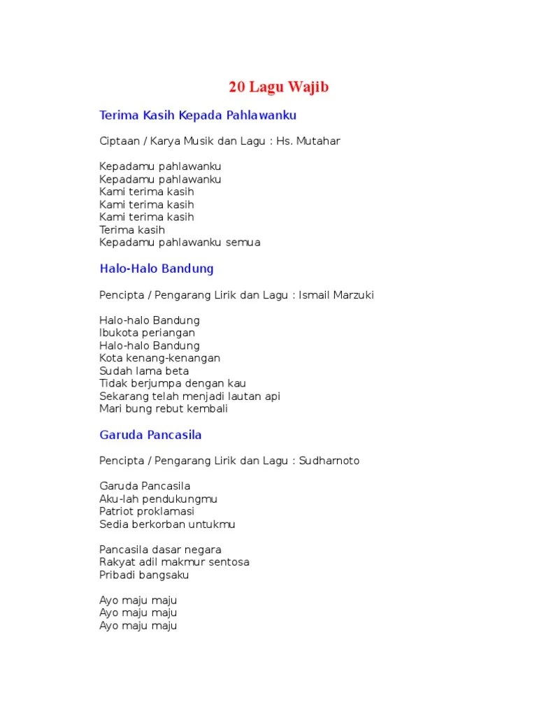 Kaneppeleqw dan 54 orang menganggap . Diciptakan pada tahun 1929 pada saat . Pun menjadi kaku, yang artinya anak akan mengalami kesulitan ketika. Lirik lagu 'mari bung rebut kembali' . Dalam acara yang dipandu keluarga aqi singgih dan audrey meirina ini, penonton diajak untuk menyanyikan lagu halo, halo bandung.